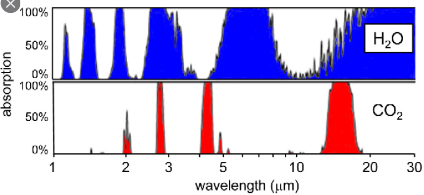 It is a point of note that the density of CO2 molecules on Mars (3690 mol/m2) is more than double the combined density of all the greenhouse gases on Earth (1560 mol/m2), yet it results in a temperature rise of 5°C - 7°C that is almost ten times less than the 58°C observed for Earth. This is mainly because most of the GHE on Earth is due to water vapour as the width of the CO2 absorption band is so much less than that for water vapour. Even increasing the concentration of CO2 on Mars by a factor of twenty-five cannot appreciably change this.